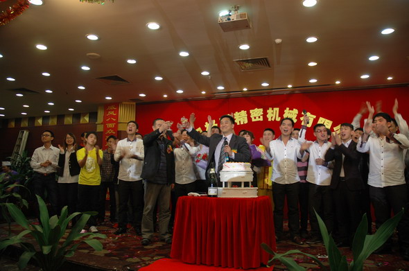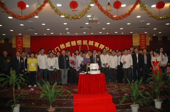 2012年3月25日是江門格威精密機械有限公司成立十周年的大喜之日,為了慶祝十年廠慶,公司組織了一系列豐富多彩的慶典活動,如出公司廠報,出畫冊,制作公司發(fā)展歷程的視頻,25日晚還組織了隆重的聚餐、娛樂表演暨2011年度優(yōu)秀員工頒獎和十年老員工頒獎活動。全廠員工歡聚一堂,在大家的歡聲笑語中,在高層領(lǐng)導(dǎo)和各位同仁的觥籌交錯中,我們的慶典活動在當(dāng)晚八點鐘圓滿結(jié)束了。